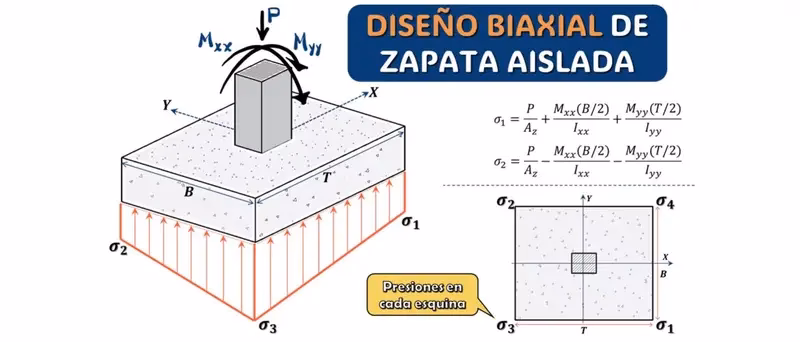 - Desafío: Excentricidad de la carga en dos direcciones, generando momentos biaxiales.
