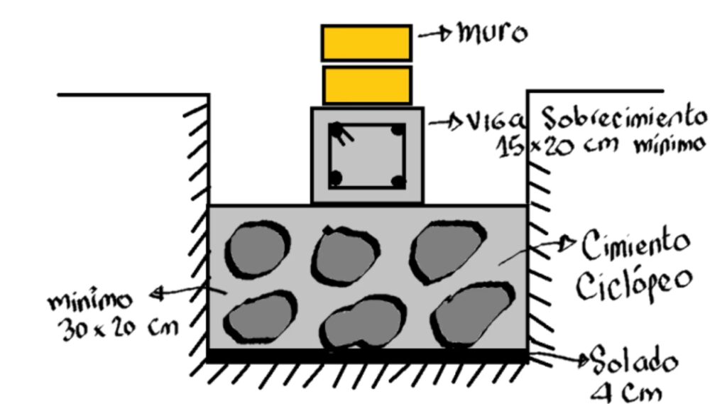 - Sí, es altamente recomendable vaciar un solado (concreto pobre con f’c = 7 MPa) en el terreno compactado y nivelado antes de colocar el ciclópeo. Esto proporciona una base limpia, nivelada y evita la pérdida de agua del concreto fresco al suelo.