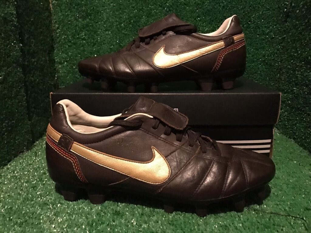 Ronaldinho prefería las Nike Tiempo por la sensación y el toque excepcionales que ofrecían gracias a su construcción en piel natural. Este tipo de calzado se adaptaba perfectamente a su estilo de juego basado en el control, la técnica y la creatividad, permitiéndole sentir el balón de una manera única.