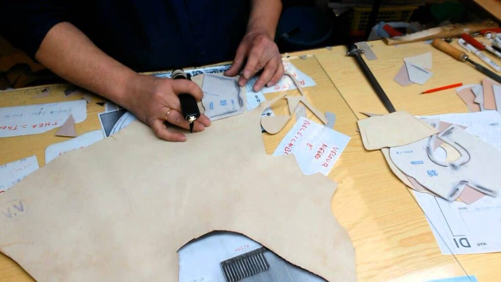 En el corte manual, el artesano utiliza patrones de cartón o metal (plantillas) que se colocan sobre el material. Con una cuchilla afilada, se traza el contorno del patrón, o se utilizan troqueles de acero con formas específicas que se golpean sobre el material con un mazo o una prensa manual. Este método requiere una gran habilidad, destreza y un ojo entrenado para la optimización del material. Es común en la producción de calzado artesanal, de lujo o en pequeñas series, donde la flexibilidad y el control individual son primordiales.