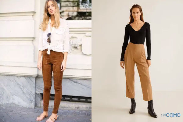 - La Gama del Marrón (con precaución): Toda la gama de los marrones. Sí, puedes optar por un look monocromático, pero con una regla de oro: evita combinar el pantalón con marrones más oscuros que este. La clave está en crear contraste de tonos dentro de la misma familia, optando por marrones más claros como el camel o el tostado para la parte superior.