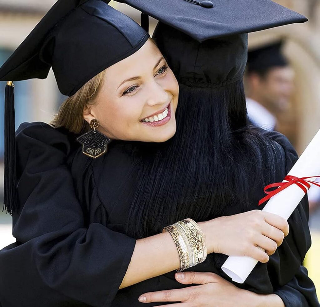 • Estilo Moderno: Las togas y birretes actuales suelen tener diseños más modernos y estilizados que los tradicionales, lo que permite que tu vestido se complemente bien con ellos.