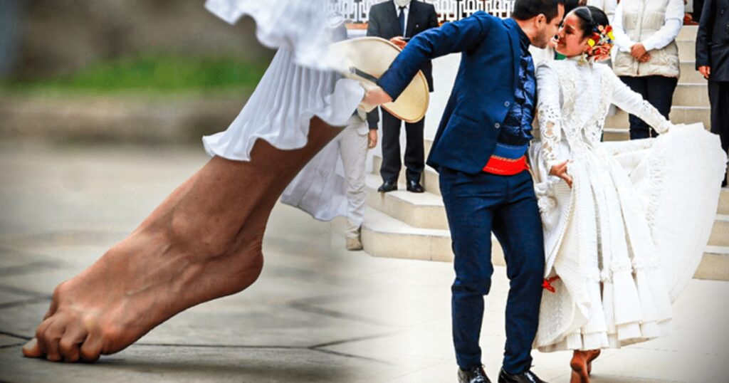 No es obligatorio en todas las variantes. En la marinera norteña, la mujer tradicionalmente baila descalza como símbolo de la campesina. En la marinera limeña, la mujer puede optar por bailar descalza o con calzado de taco alto, dependiendo de la interpretación y el contexto.