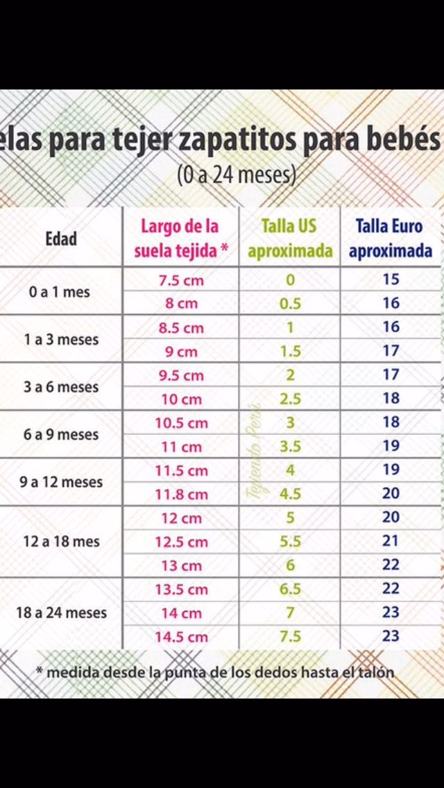 Estas medidas te ayudarán a tejer adorables calzados para los más pequeños.