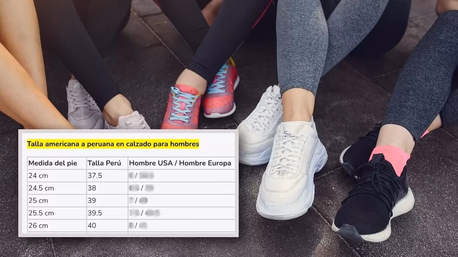 | EUR | Mondopoint | UK | US Hombres | US Mujeres |