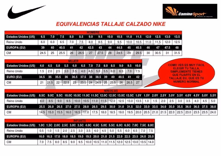 Guía de Tallas de Nike para Hombre y Mujer (Longitud del Pie en CM)