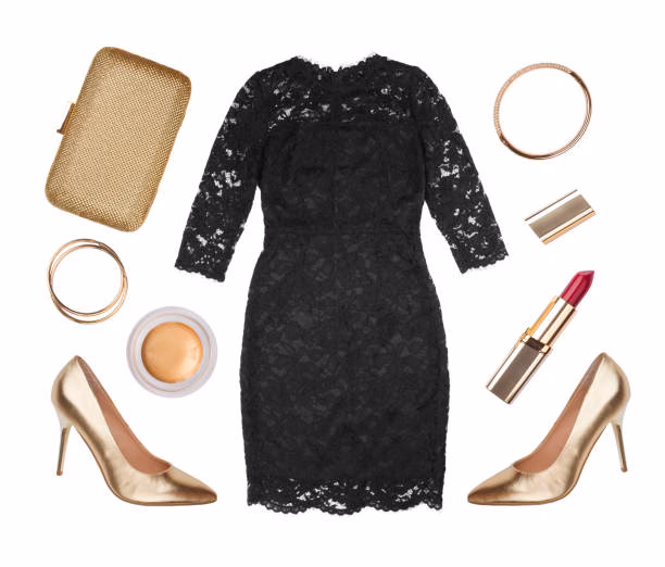 | Cóctel / Cena Elegante | Vestido negro de tubo, vestido midi negro | Detalles dorados en el vestido (bordados, lentejuelas), clutch dorado | Sandalias de tiras doradas, zapatos de salón dorados | Joyas statement doradas (collar, pulseras) |