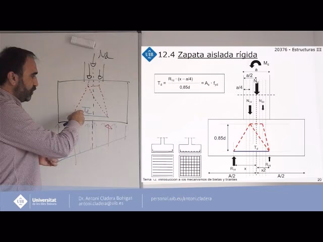 Es un modelo de análisis estructural que simplifica el flujo de fuerzas en elementos de hormigón armado donde se producen concentraciones de tensiones (nudos) y trayectorias de compresión (bielas) y tracción (tirantes). En zapatas rígidas, este mecanismo es fundamental para entender cómo se transmiten las cargas de la columna al suelo.