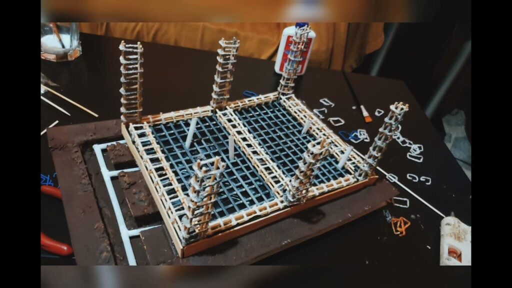 - Se excava hasta encontrar terreno firme, se instalan varillas de acero corrugado (8mm de diámetro, sobresaliendo 30cm y embebidas 20cm) formando un cuadrado central. Luego, se vierte el hormigón, se nivela la superficie superior y se construyen las columnas sobre ellas, rellenando el espacio de las varillas con mortero.