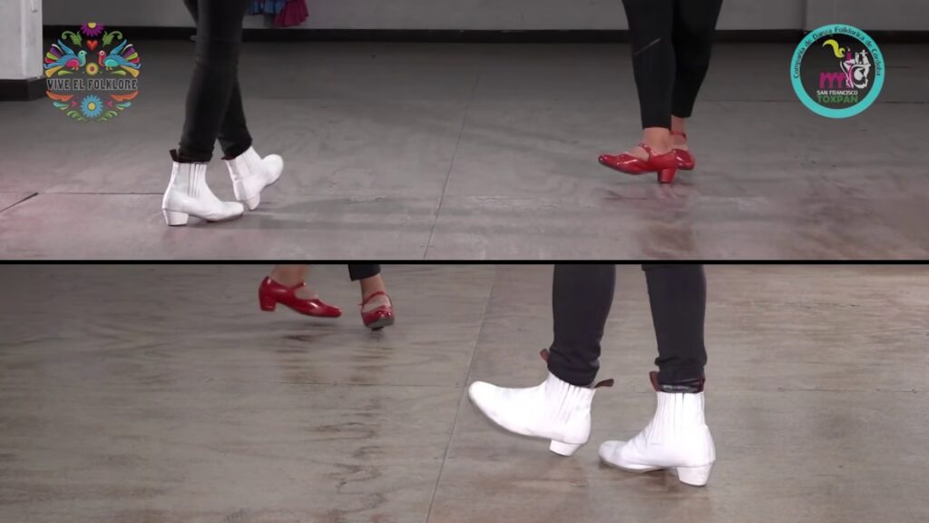 El zapateado es, sin duda, la característica más destacada y reconocible del Jarabe Tapatío. No es solo un conjunto de pasos, sino una percusión viva que nace del encuentro rítmico entre el calzado y el suelo. Los bailarines utilizan sus pies para producir un sonido rítmico y coordinado con la música, convirtiendo sus zapatos en instrumentos que narran la historia del cortejo. Los pasos básicos de zapateado incluyen: