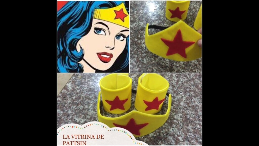 Ningún disfraz de la Mujer Maravilla está completo sin su característica corona y sus poderosos brazaletes. Estos accesorios son relativamente sencillos de crear y añaden un impacto visual enorme.