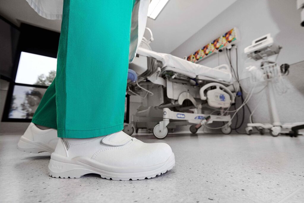 3. Suela: Asegúrate de que la suela sea antideslizante y adecuada para las superficies de tu laboratorio. Un buen agarre es fundamental. Los modelos de AIMBOO destacan por su función antideslizante y su absorción de impactos.