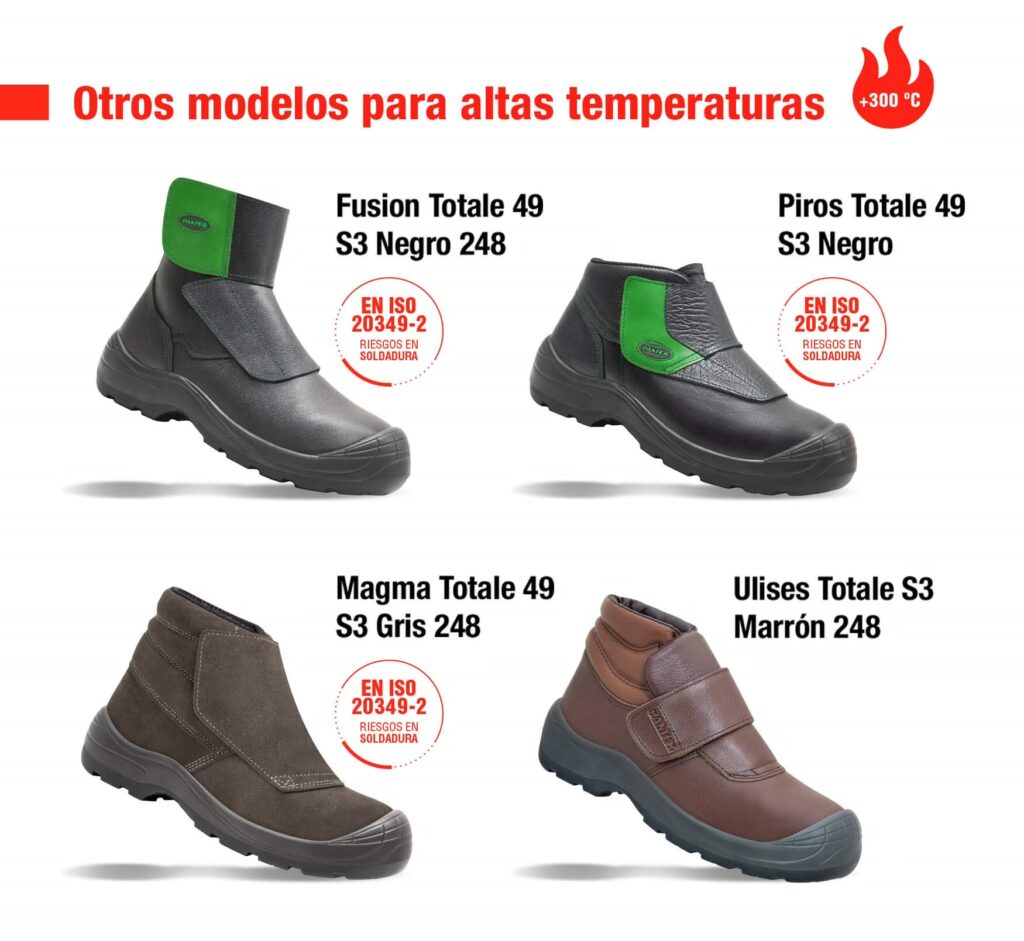 - Resistencia al Calor y al Fuego: Las botas deben estar fabricadas con materiales que resistan las altas temperaturas, las chispas y las salpicaduras de metal fundido sin derretirse, quemarse o degradarse rápidamente. El cuero tratado o materiales sintéticos ignífugos son comunes.