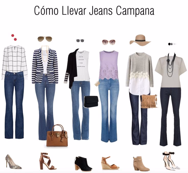 Los jeans de bota ancha o 'flared jeans' son un clásico atemporal. Su resistencia y versatilidad los hacen perfectos para el día a día. Puedes combinarlos con una camiseta básica y zapatillas para un look casual, o con una blusa de seda y tacones para un toque más sofisticado. Son increíblemente adaptables y salen con casi cualquier calzado, como bien se menciona, permitiendo transiciones fáciles entre looks diurnos y nocturnos.